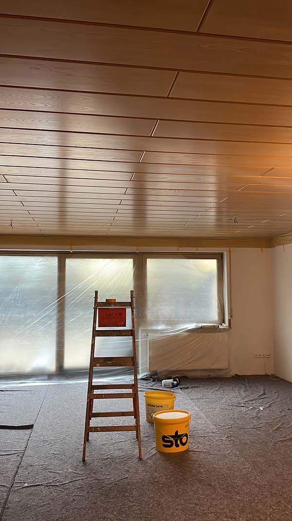 Perfektionistische Oberflächenvorbereitung: Ich schleife, grundiere und spachtle so lange, bis jeder Untergrund makellos ist. Nur auf perfekter Basis hält Farbe jahrelang ohne Blasen, Risse oder Abplatzungen.